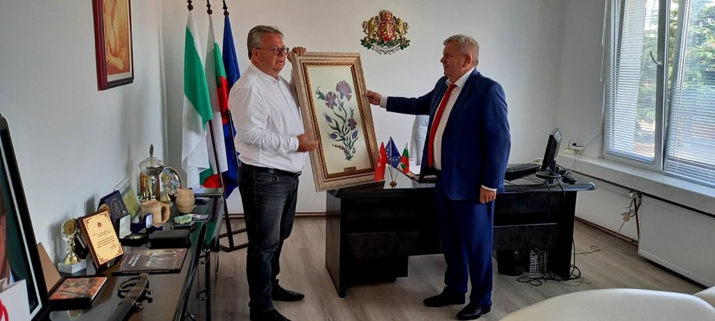 Кметът на община Сюлоглу г-н Мехмед Орманкъран поднесе на д-р Георги Кенов подарък – картина, изработена от децата в читалището на гр. Сюлоглу. Проектът е съфинансиран от Европейския съюз чрез Програмата Интеррег-ИПП за трансгранично сътрудничество България – Турция.